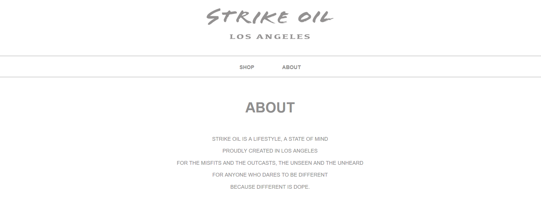 Artist, designer, and LGBTQ rights activist, Nats Getty, was launching her new lifestyle brand, Strike Oil, and wanted its copy – including the site’s about page and product descriptions – to reflect her irreverent voice.